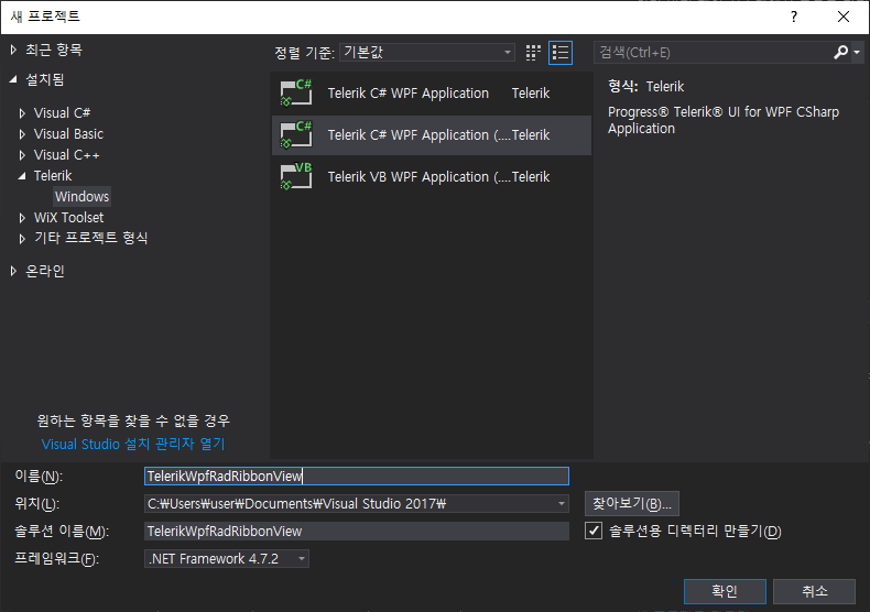 홈페이지의 Getting Started를 보면 쉽게 만들수 있지만 나처럼 WPF, Telerik 초보자를 위해서 만드는 과정을 정리해 본다. 잊으면 나중에 다시 볼 수 있도록~