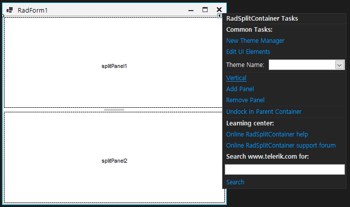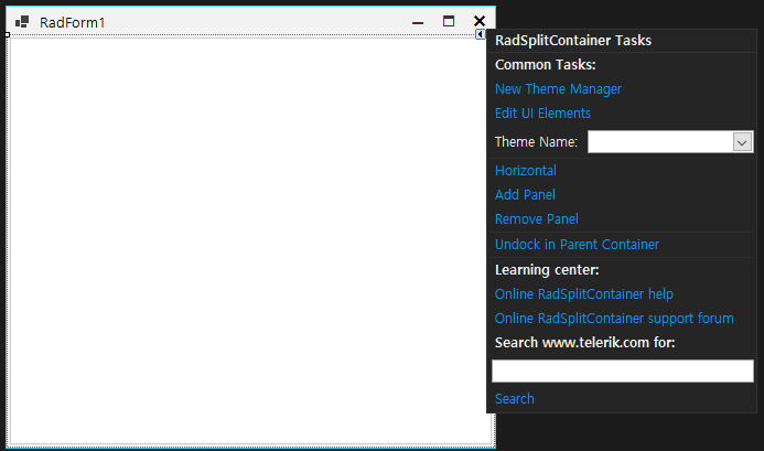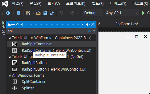 1) Form을 만든다. 도구 상자에서 RadSplitContainer 선택한다.