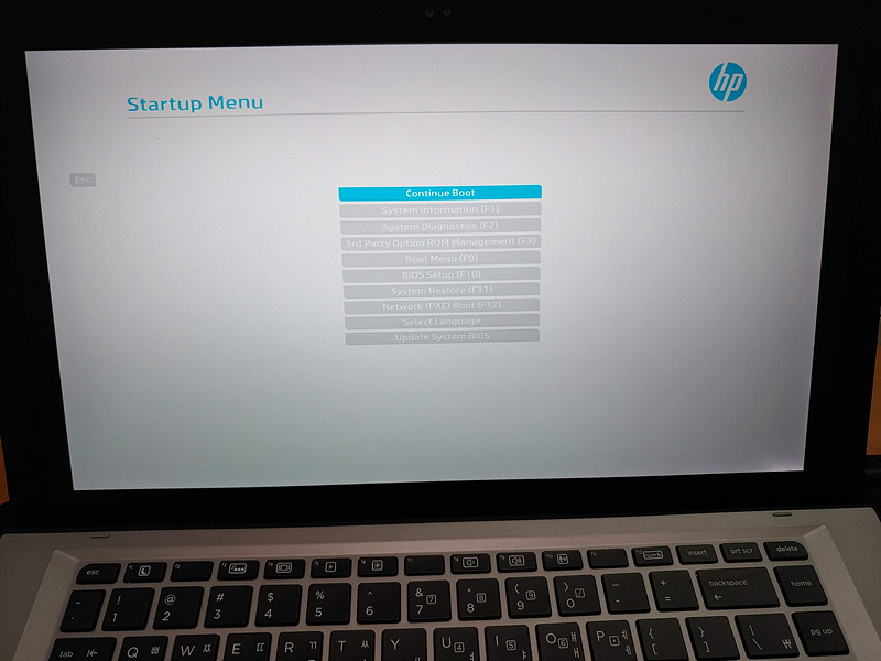 HP ZBook x2는 태블릿 형태이기 때문에 일반 노트북처럼 부팅후 ESC키를 눌러서 cmos 모드로 들어갈 수가 없다. 검색을 해서 HP 홈페이지에서 위와 같은 방법을 찾았다.