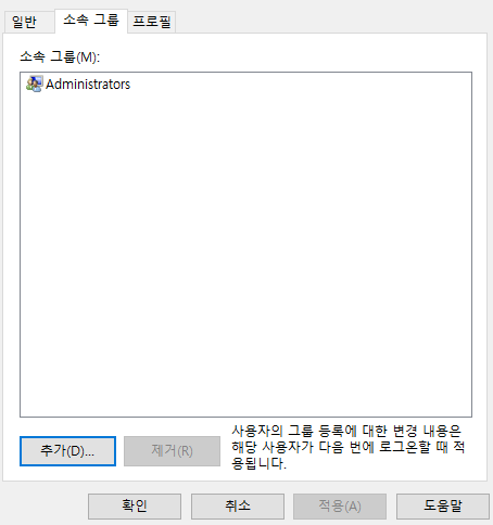 그리고 소속 그룹에는 Administrator를 추가한다.