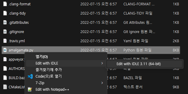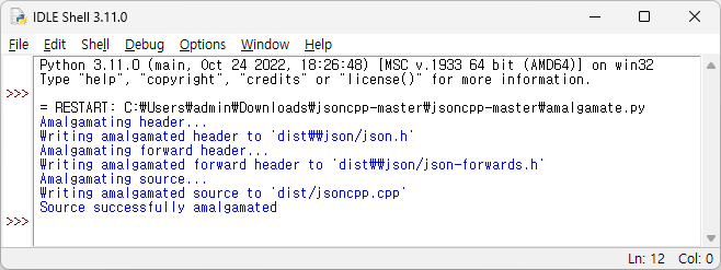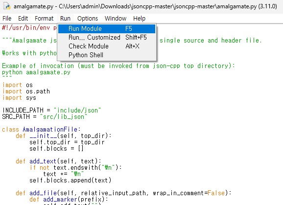 2. python를 설치하고, 다운받은 json 폴더의 amalgamate.py 파일 실행합니다.