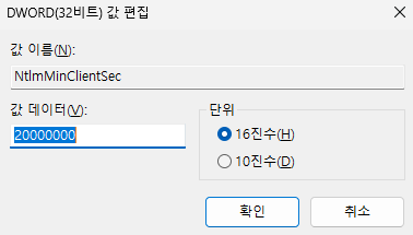 그래서 검색을 해보니 윈도우에 NTML2 인증 사용 설정 방법이 있다.