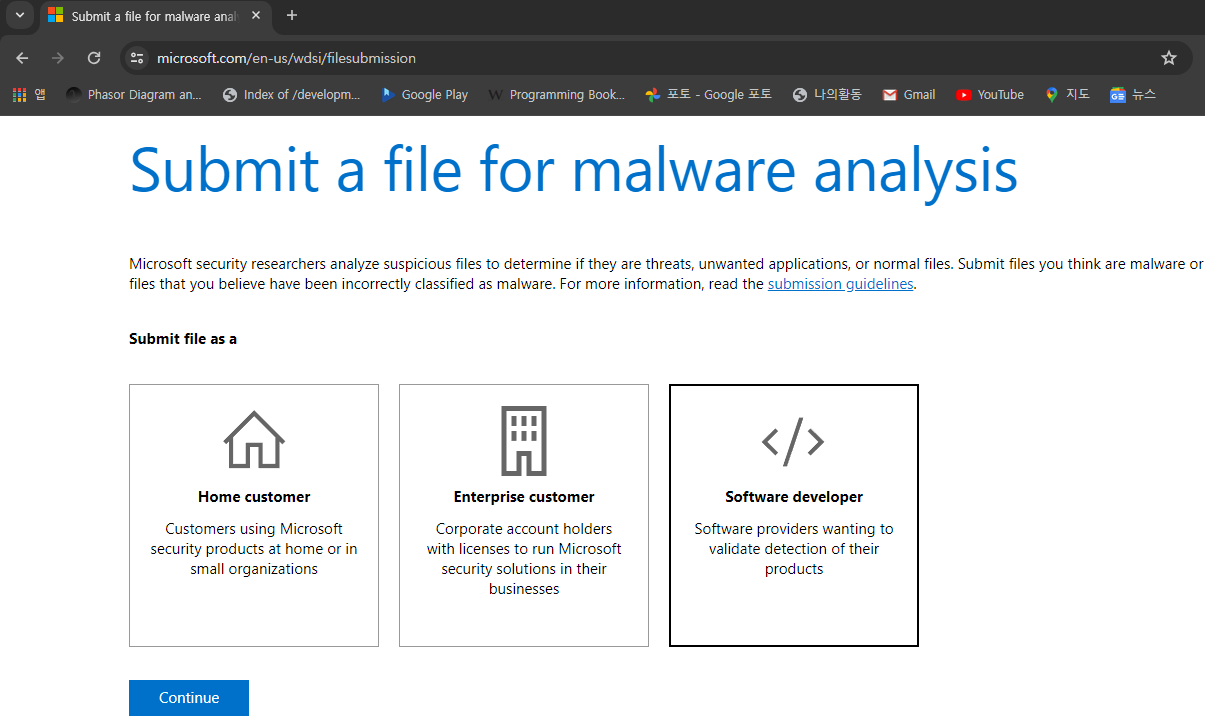 파일을 등록하면 파일에 대한 자세한 검사를 마이크로소프트사에서 진행하고 그 결과를 공유 한다고 한다.