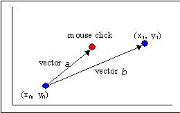 Figure 5 shows how vector a is projected onto vector b. The components of the newly projected vector are shown as well. Notice that the length of the normal (perpendicular to the line) vector is the distance from the mouse click to the line.