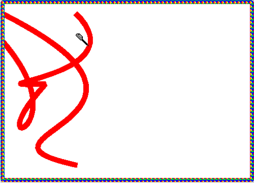 To hit test a line, place the mouse cursor over the line and press the left mouse button as shown in Figure 8. If you have hit the line, it will be redrawn using the inverse of the pen color. Then the dialog box in Figure 7 will appear. You can change any of the attributes of the pen and line/curve at that time.
